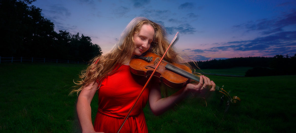 Julii jsem fotil už dřív. Tentokrát jsme však knížky vyměnili za housle a z atelieru vyrazili do plenéru. Hraje totiž už od základky a já rád fotím lidi při tom, co dělají. Snažil jsem se, ostatně jako vždy, vytvořit několik různých vzhledů, aby bylo z čeho vybírat. Lokaci jsem si obhlížel nedávno.