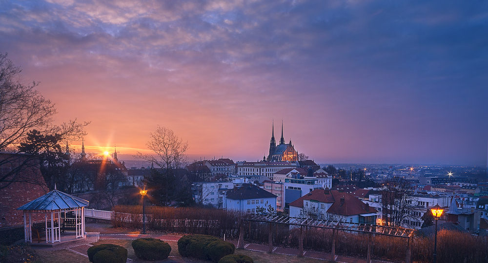 Minulý týden jsem se vypravil na Hrad – jedno z mála míst, odkud se dá fotit Petrov směrem na východ. Pokud chcete fotit východ slunce, je dobré, aby to slunce bylo taky vidět, to dá rozum. Máte-li něco takového v plánu, vyplatí se den dopředu mrknout na předpověď počasí a oblačnosti, jestli vůbec má smysl někam jezdit (postačí třeba ta na idnes.cz). Vyplatí se taky zjistit, od kdy do kdy ve vaší lokalitě trvá ranní modrá a zlatá hodinka, abyste věděli, v kolik tam vlastně máte být – existuje na to bezpočet mobilních aplikací, já používám Exsate Golden Hour. Aplikace PhotoPills vám dokonce prostřednictvím rozšířené reality umí na displeji telefonu/tabletu ukázat dráhu, po které se bude slunce pohybovat. Zkrátka, nepodceňujte přípravu. 5 tipů pro focení krajiny. No a pak už „jen“ být na místě včas :-).